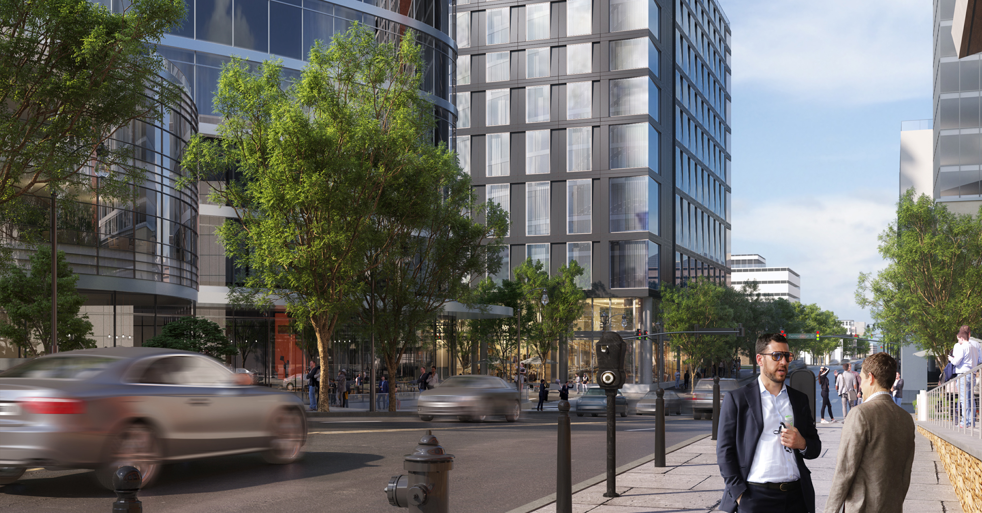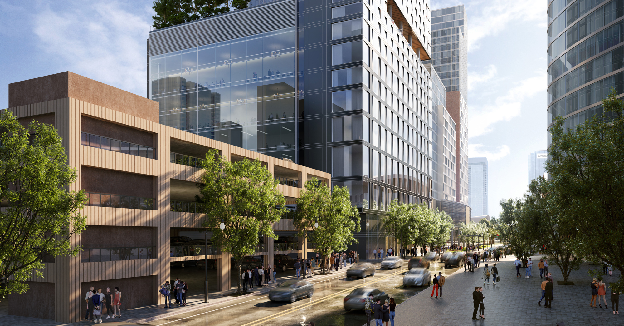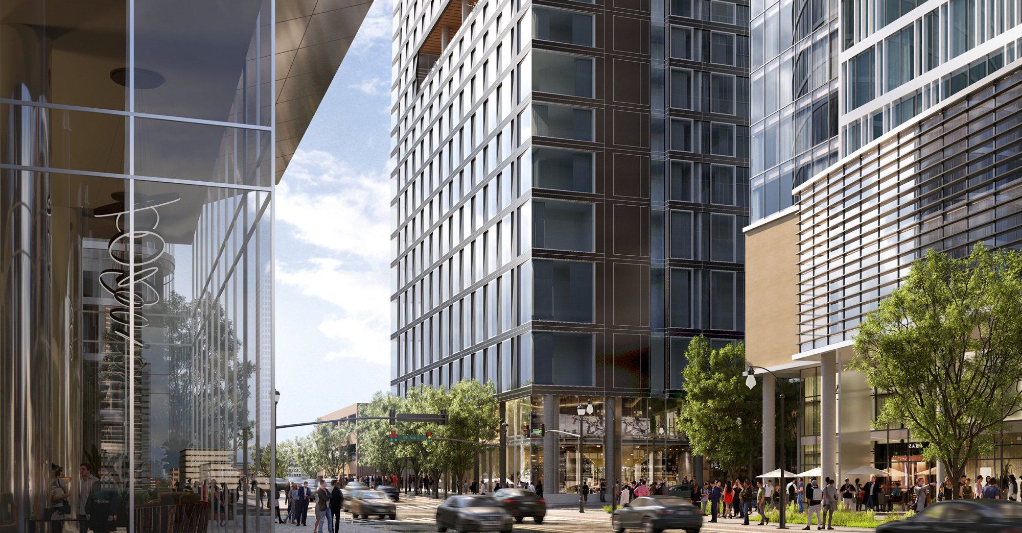 Downtown Nashville is poised for a dramatic transformation with the introduction of a groundbreaking 35-story hotel tower at the corner of 8th Avenue South & Demonbreun Street. With a visionary design by HKS, the tower's standout feature is its canted façade along Demonbreun Street, ingeniously creating a setback through a diagonal building façade on a single plane. The tower's exterior showcases a state-of-the-art unitized curtain wall system composed of sleek sloped metal panels and expansive punched windows. Situated at 131 8th Avenue in Nashville, the development covers 0.55 acres and adheres to DTC zoning regulations, signaling a seamless integration into the cityscape.